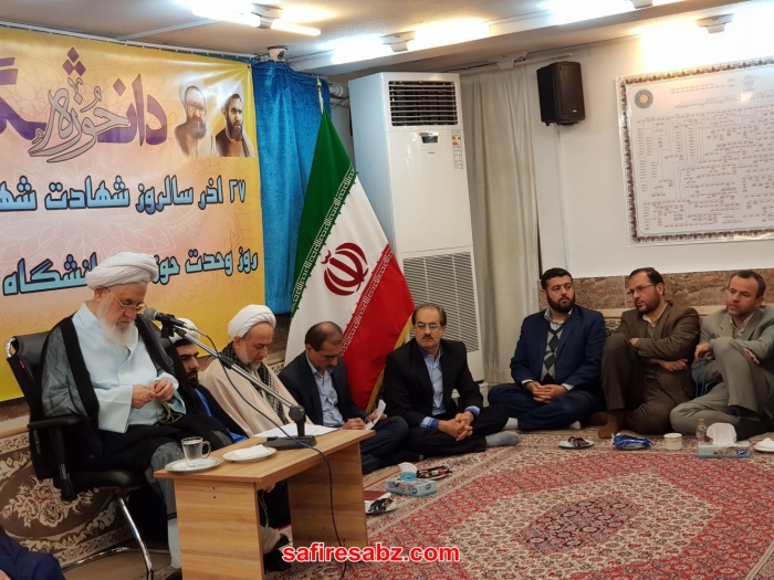 وی با بیان اینکه بزرگانی مانند امام(ره) و سید محمدتقی خوانساری از حوزه‌های علمیه پدید آمدند، اظهار کرد: حوزه‌های علمیه درس زندگی، جهاد و ... را ارائه می‌کنند.